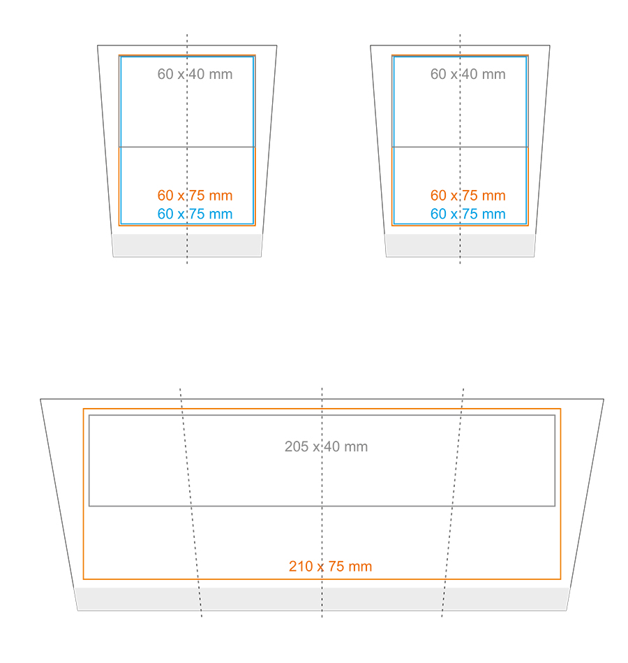 * W przypadku projektów wybiegających poza standardową powierzchnię nadruku prosimy o kontakt z działem handlowym.